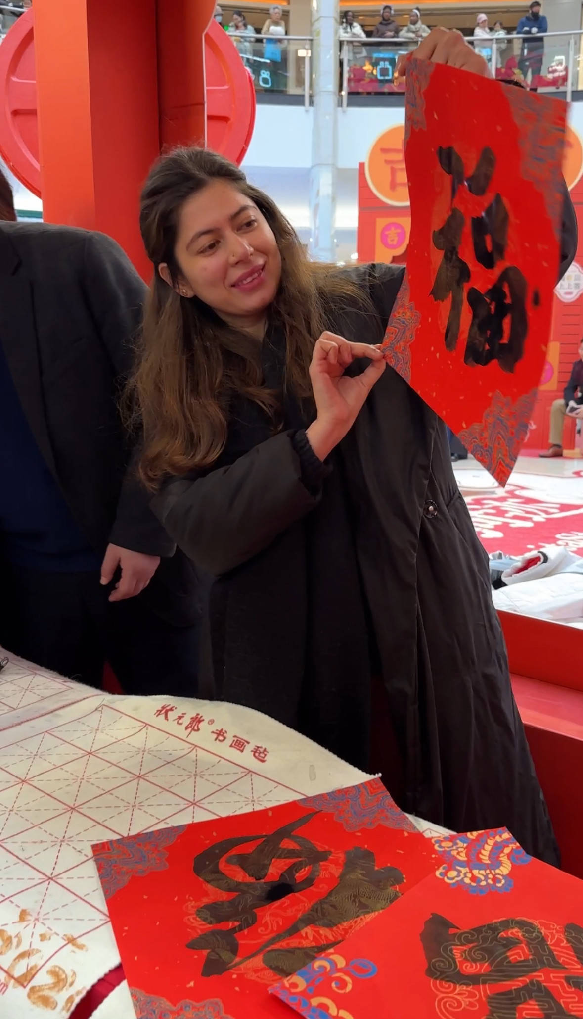 活动现场设置了多个特色鲜明、趣味十足的中国传统文化体验区,让国际学生在动手参与中感受中国年的独特韵味。大连市青年书法协会副会长刘兆发现场示范,手把手教国际学生们书写不同字体的“福”字,一笔一划间,不仅传递着书法艺术的魅力,更寄托着“福气满满”的新春期许。